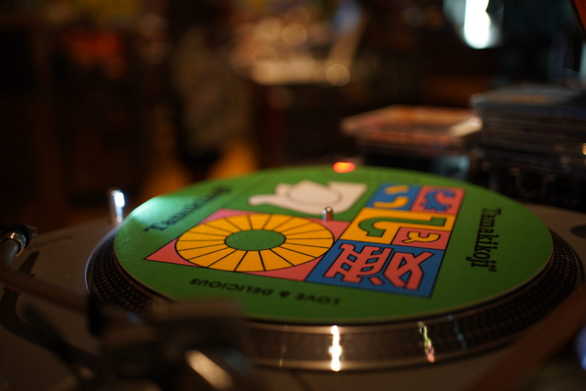 厨房を店内の中心に配置し、それを囲むようにカウンター・テーブル席を配置。 それぞれの席の床レベルが全て違っており、最大で60cm差がある。 各所に座る人の目線やスタッフとの関係性が不自然にならないよう、 使い勝手も含め各所の寸法を丁寧に調整。 ラワンベニヤや昔の建物の外壁でよく見る吹付タイルをあえて店内に使用し、少しレトロな雰囲気を演出。 オーナーにより、膨大な量のレコードや玩具、豊富な種類のお酒が各所にセンスよくディスプレイされており、 空間に深みが出ている。