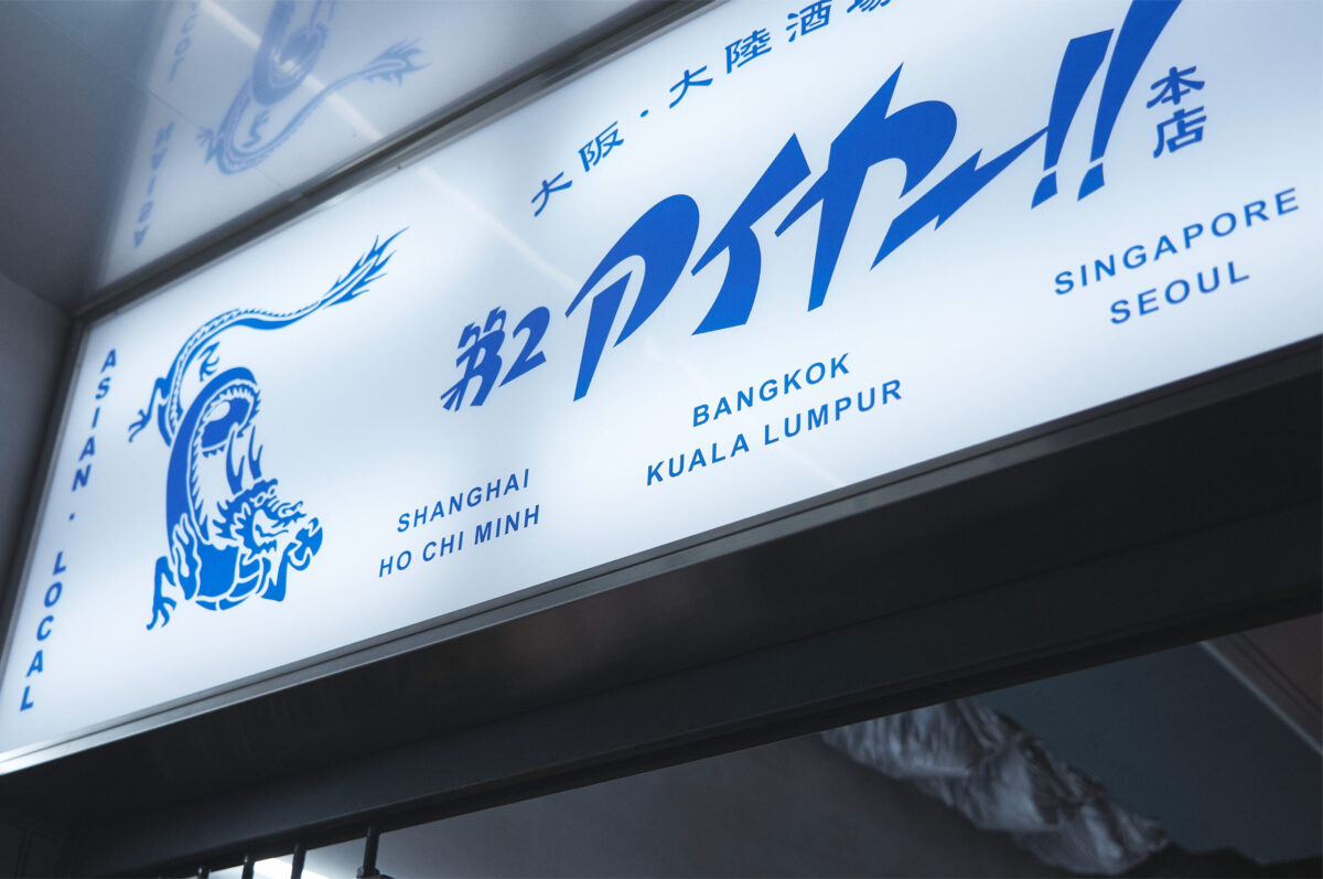 ネーミングのユニークさとインパクトを強調したロゴデザイン。アジアのレトロ感とポップさを融合させたカオスな空間を表現。