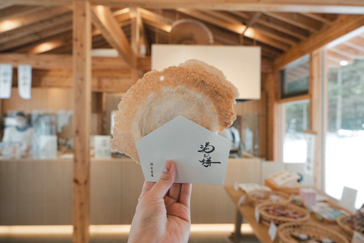 「焼きたて福レ餅」用、焼く前の「福レ餅」用のパッケージを2種制作。 「焼きたて福レ餅」のパッケージは、神社を想起させる、絵馬の形状をモチーフにデザイン。 絵馬は祈願するときに奉納したり、願いが叶ったときに感謝の意味を込めて奉納することから、 福レ餅も食べることで、福を呼び、福が膨らんでいく縁起物にとの想いを込めている。