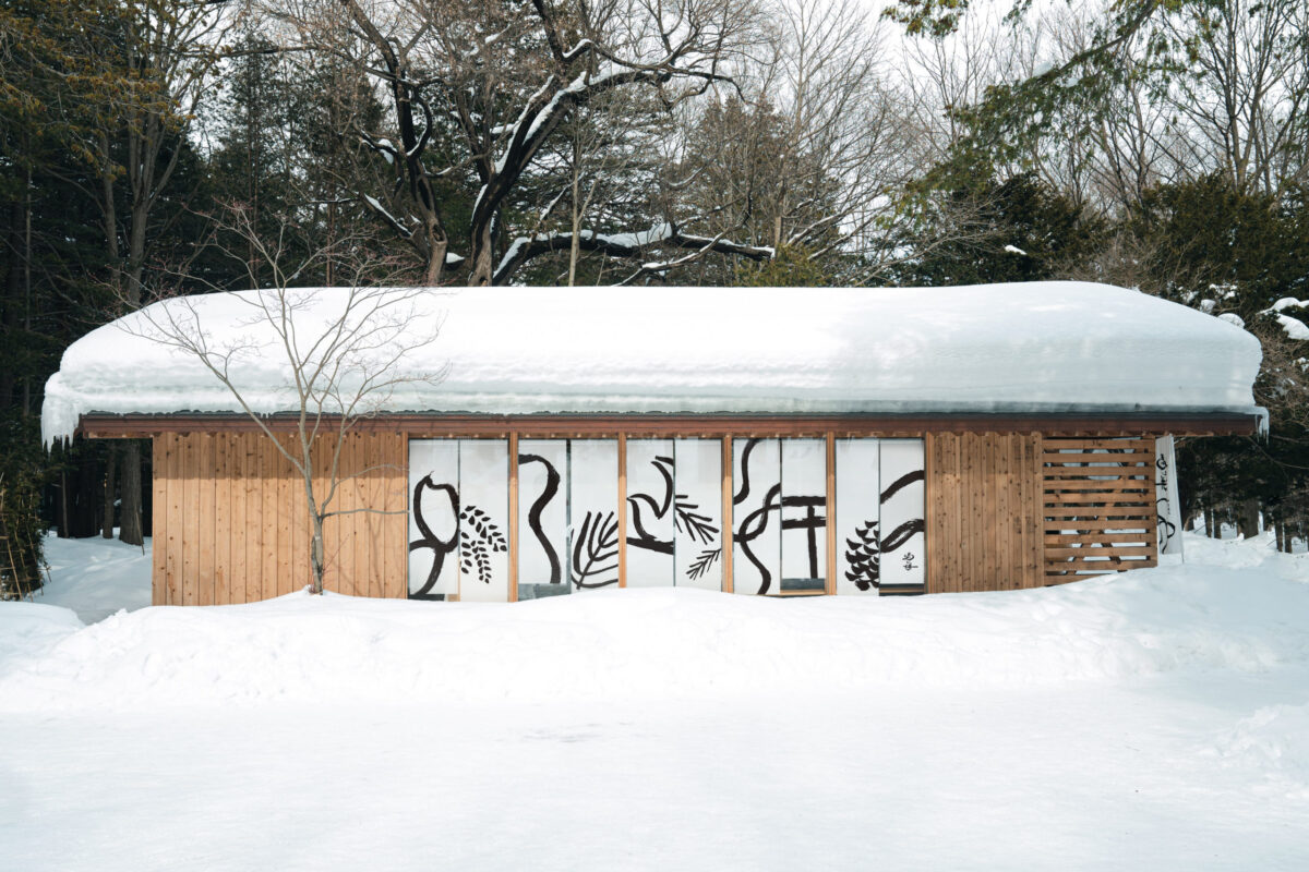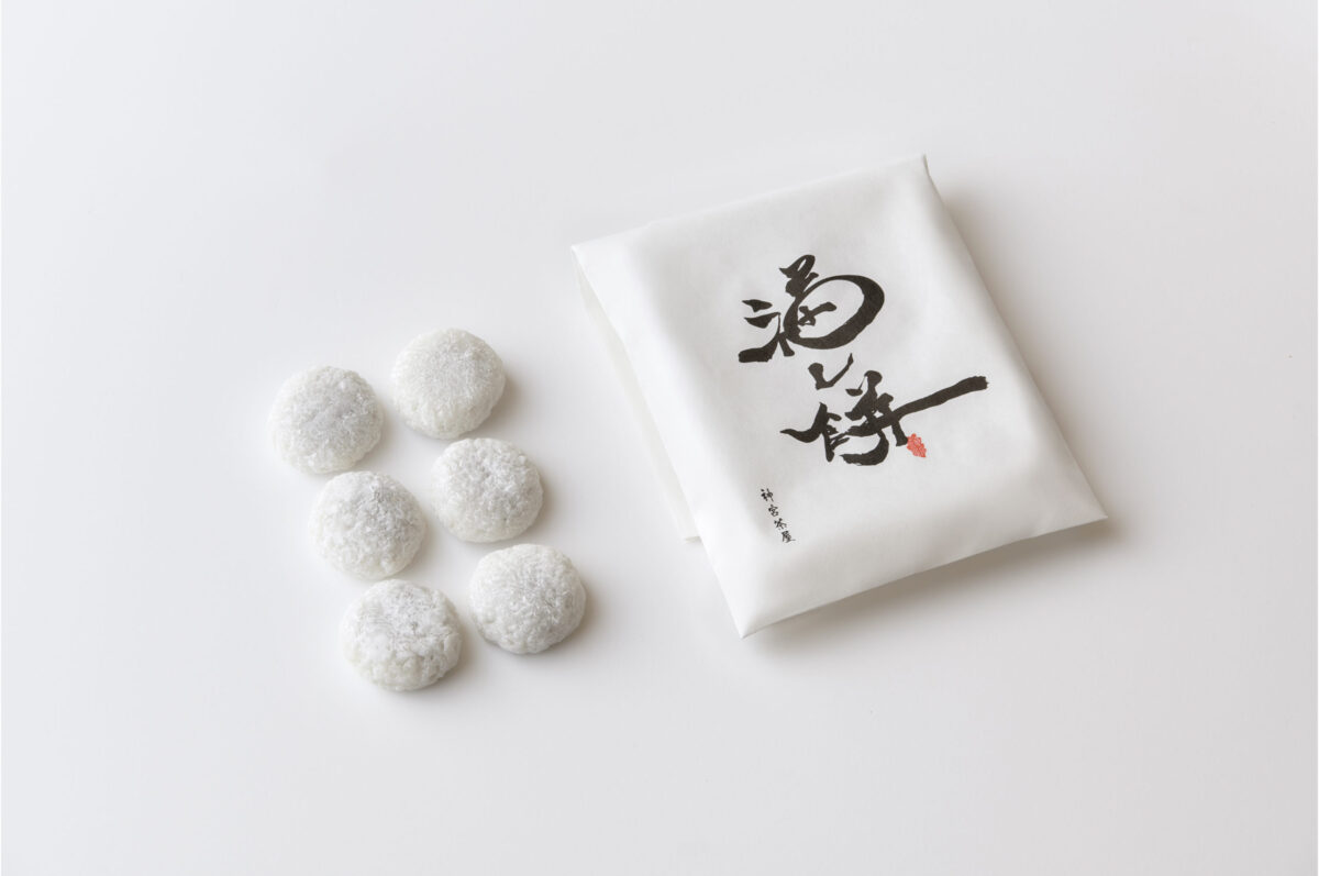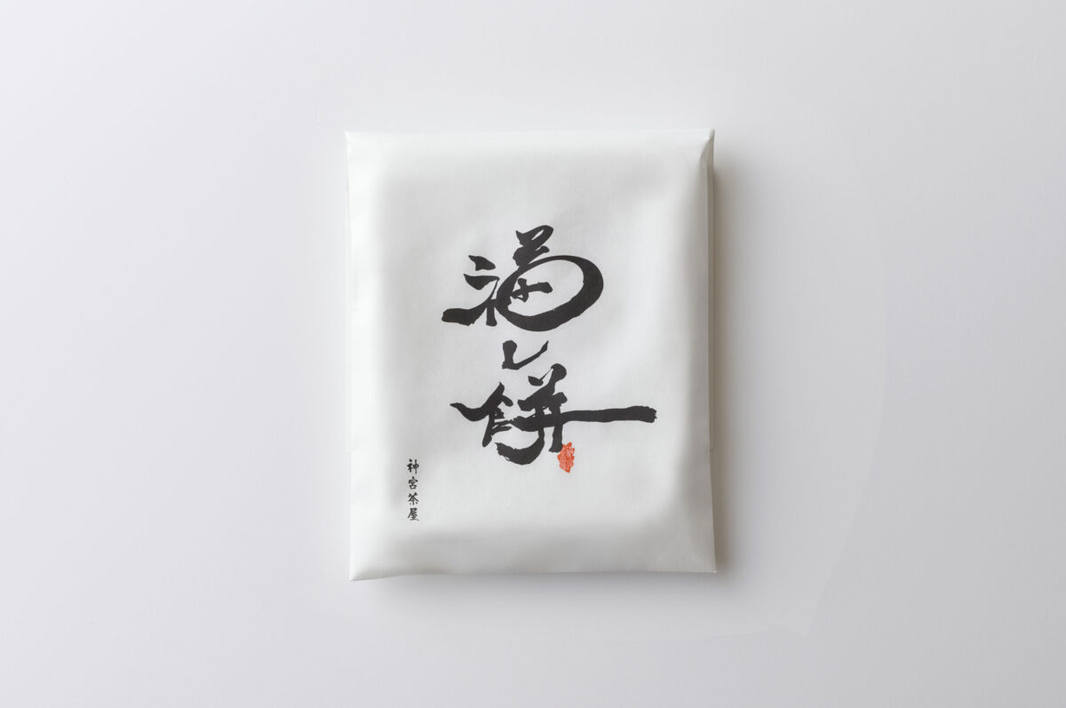 神宮の風格を保ちながら、餅の要素である「稲・米・餅」と、神宮茶屋のある環境「植物や鳥」などを抽象的な筆書きのアートで表現。長半紙をイメージした形状とアートで、和洋折衷で現代的な佇まいに。ロゴの筆文字に合わせたトーンで、暖簾をデザイン。