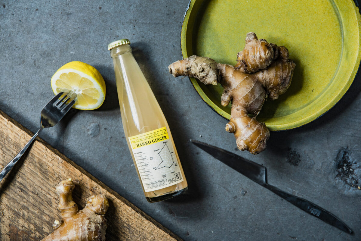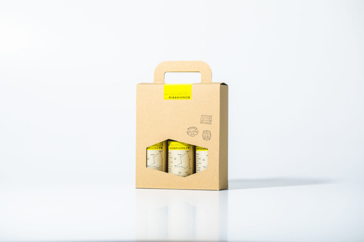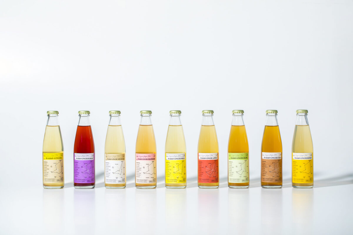 日本にはまだ認知されていなかった〝Ginger Beer〟のデザイン。発酵の効果がより効く、人間の健康に良いということを表現するのにデザインも効能を表現するグラフをモチーフに展開し紙質もふわりとしたものにし、薬瓶のような雰囲気を目指した。