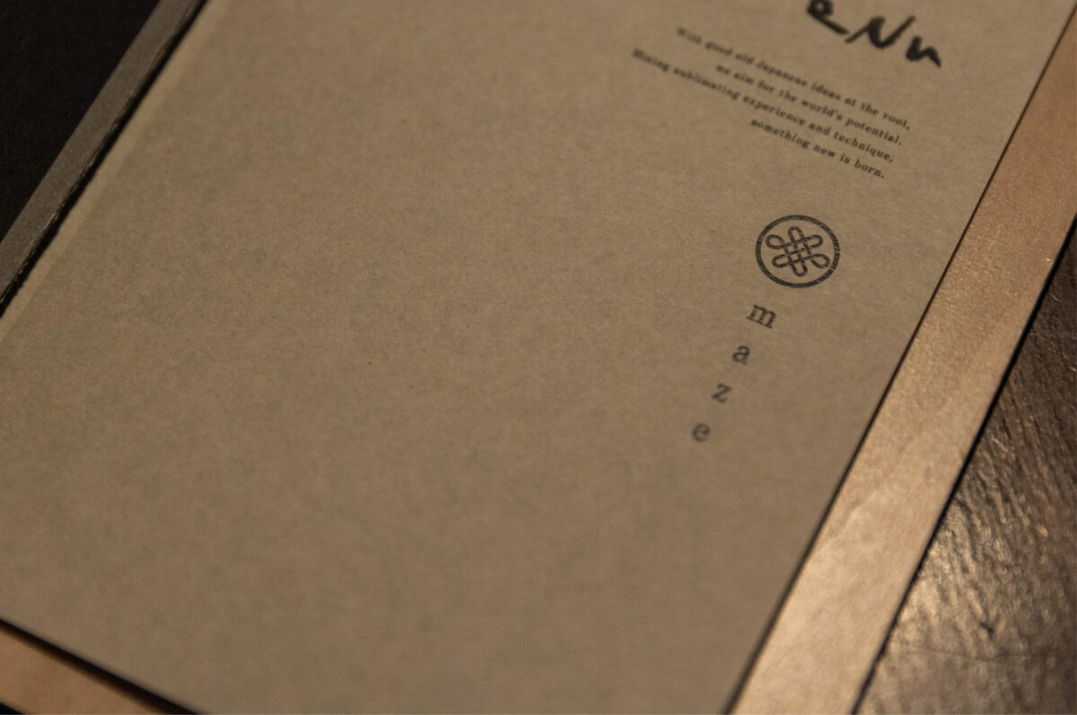 ひらがなの「ま」を図案化し。「混ぜる」「交差する」「続いていく」要素を落とし込んだデザイン。「水引き」をモチーフに現代的にアップデートしてオーセンティックさの中に新しさを。シンボルの左右に切り込みを入れることで、料理をスプーンで混ぜている様を表現。