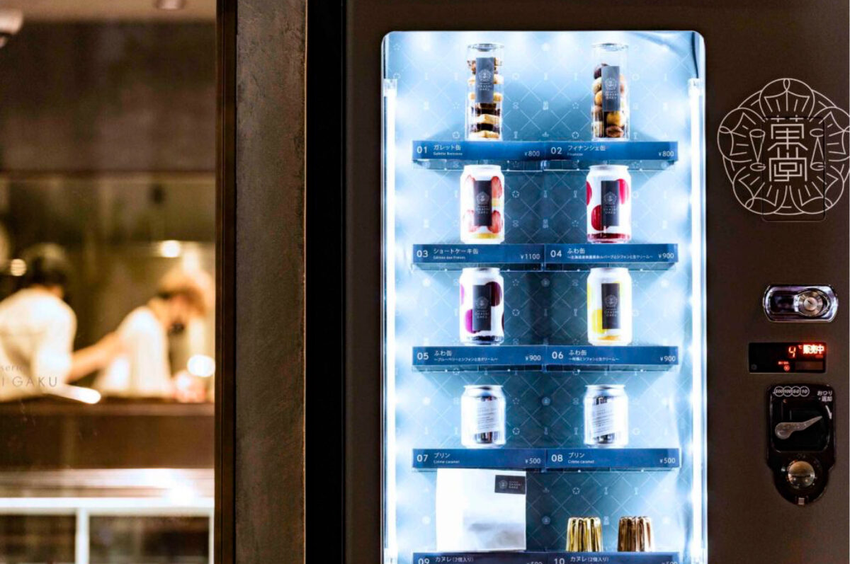 構成要素として中央〝菓学〟の旧字体と、数学の図式のように〝計算された高い技術〟を意味する円錐形をモチーフとし、