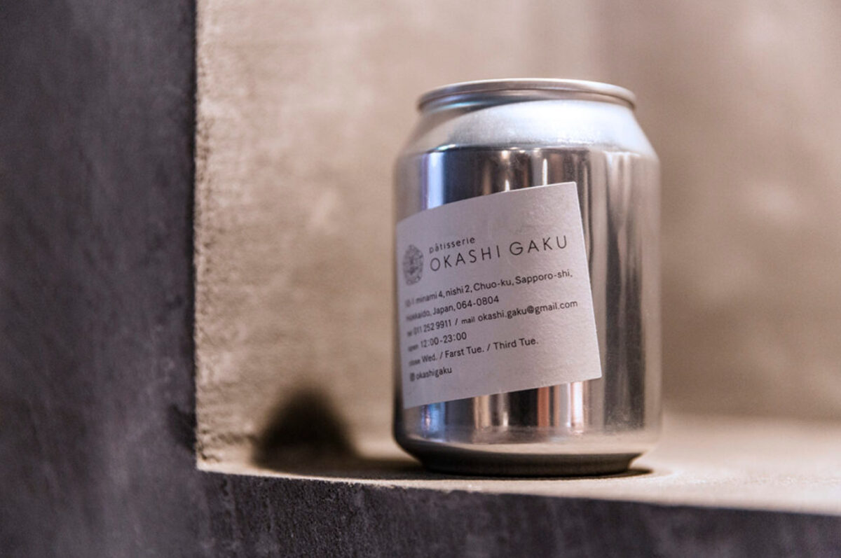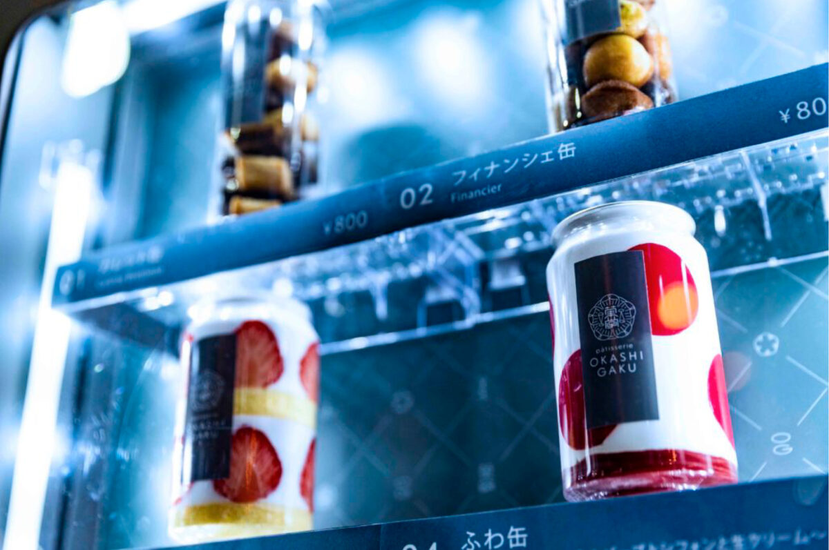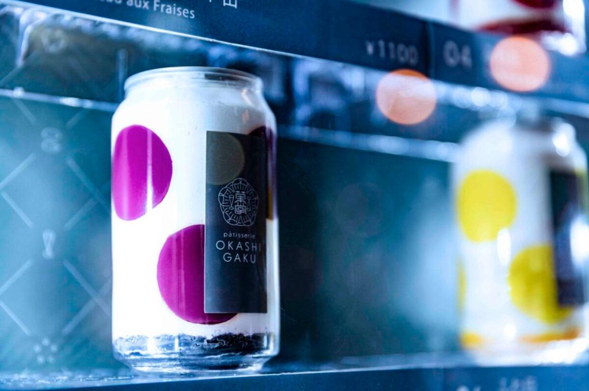日本の校章を現代風にアップデートしたデザイン。全体のフォルムは〝ホールケーキ〟と、ケーキを食べて気持ちが〝開花〟する様子を表現。構成要素として中央〝菓学〟の旧字体と、数学の図式のように〝計算された高い技術〟を意味する円錐形をモチーフとし、お菓子+学の意味合いを強めている。