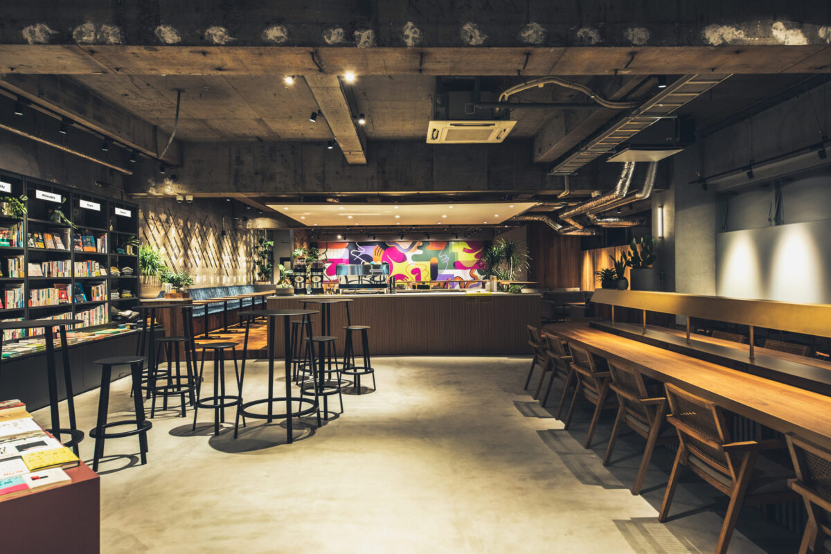 コワーキング、カフェ、書店と様々な側面を持つが、