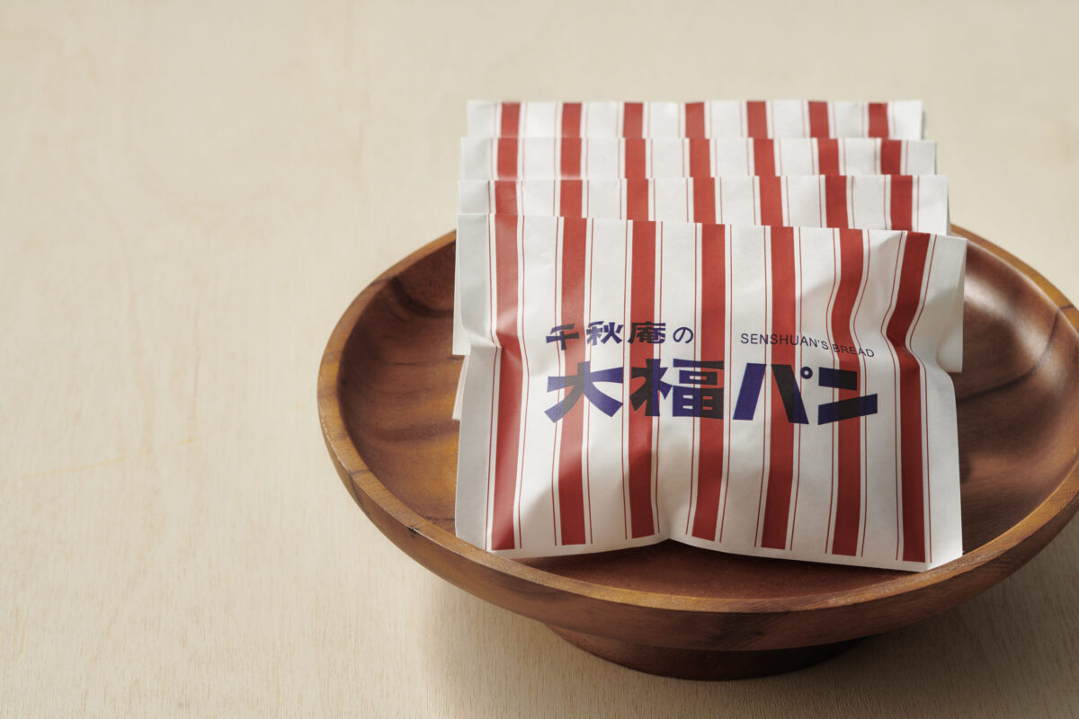 昭和40年代に販売していた「千秋庵のパン」のロゴを復刻し、新たに「千秋庵の大福パン」としてリデザインしました。