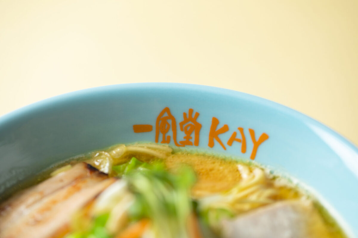 北海道発の一風堂ブランドとして「KAY」というネーミングから開発したブランドロゴ。既存ロゴの筆文字ディティールを踏襲した「KAY」を組み合わせることで新ブランドの新たな挑戦を表現している。さらに、「カイ」をシンボル化し落款としての役割を持たせた。