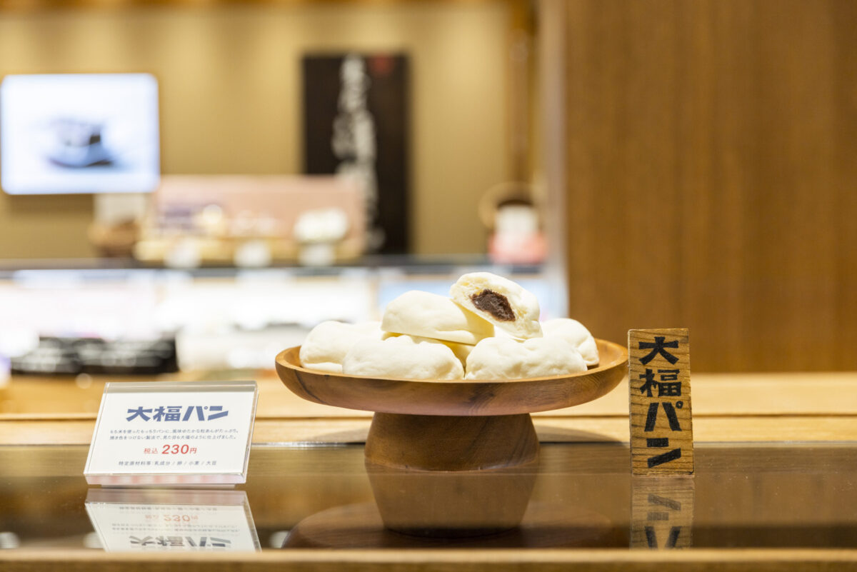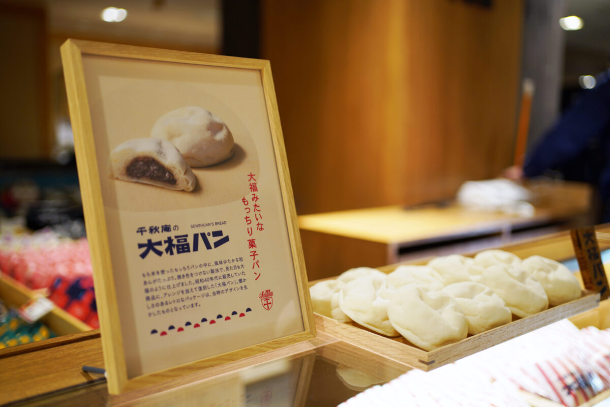 昭和40年代に販売していた「千秋庵のパン」のロゴを復刻し、新たに「千秋庵の大福パン」としてリデザインしました。