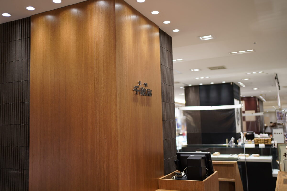 販売カウンターは昔ながらの対面販売の温かみを感じさせるオリジナルの木製什器をデザイン。大福をモチーフにした半円状のデザインにより、和の中にも現代的な洋を感じる雰囲気を感じる雰囲気を演出しています。また、「山親爺」や「ノースマン」など千秋庵を代表するお菓子も販売。 千秋庵が昔から街に灯してきたものづくりの気持ちと伝統を、空間とデザインに込めています。